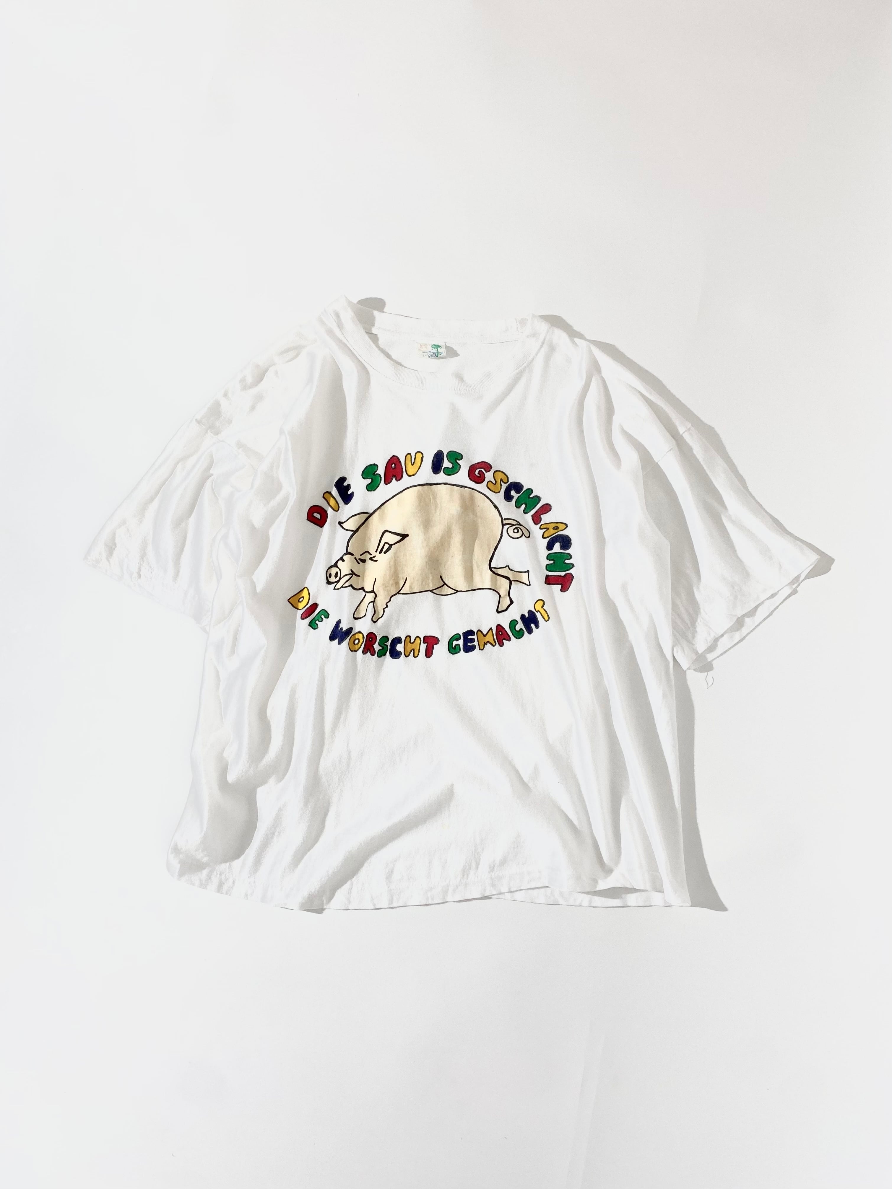 豚の絵とともにドイツ語があしらわれた一枚。