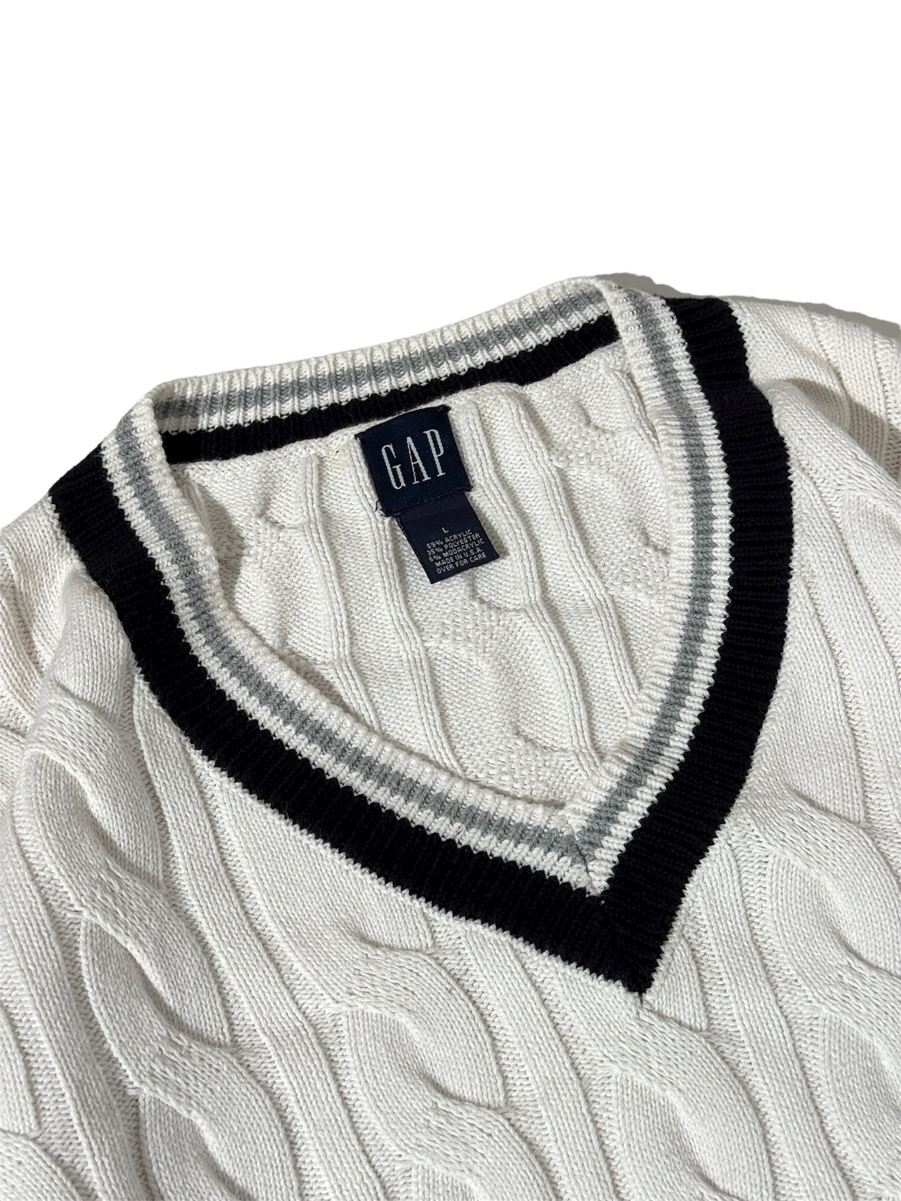 90's GAP V Neck Cable Knit Sweater "Made in USA"