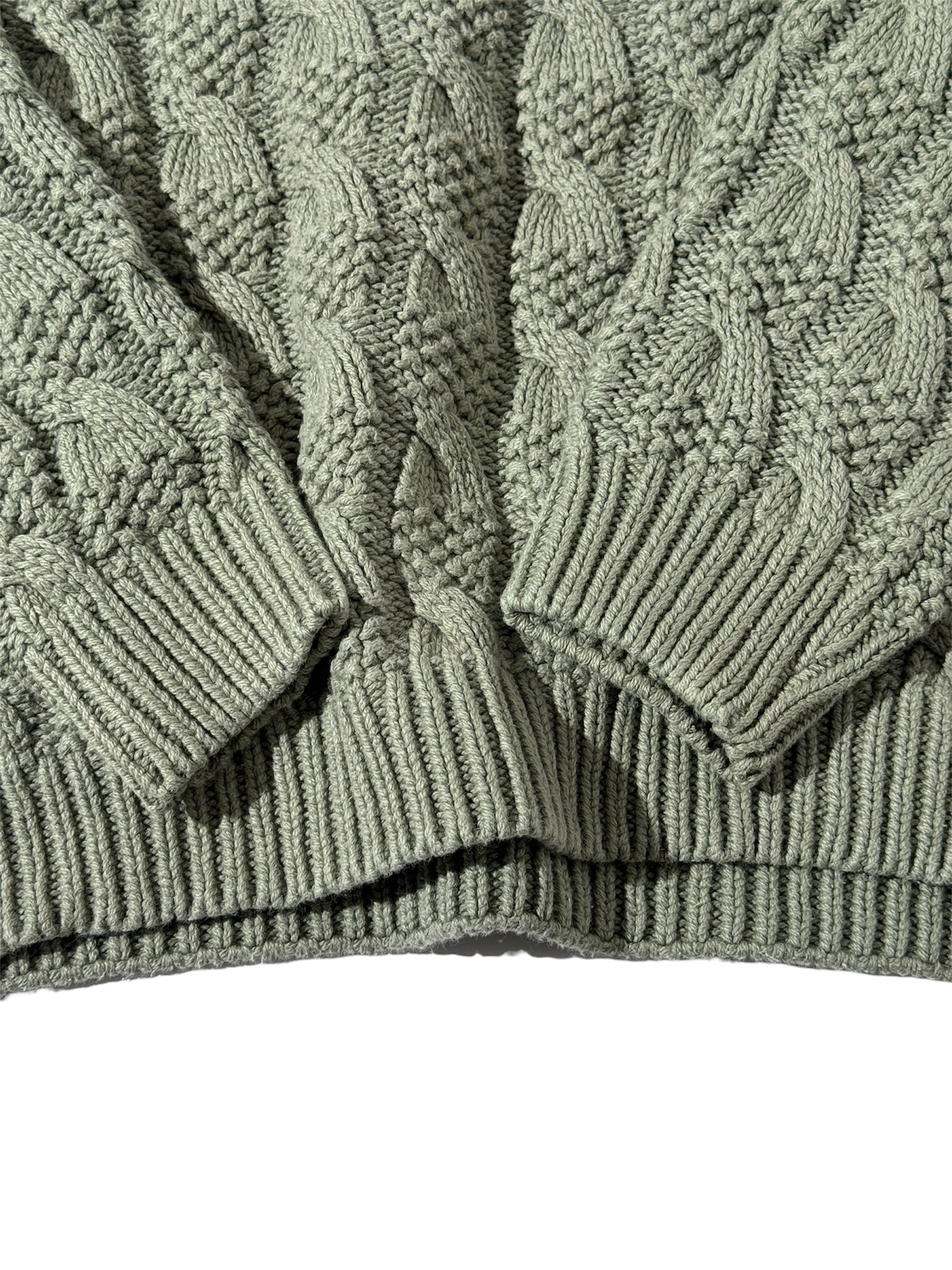 ケーブルニットではあるけど、織りにデザイン性を感じる一枚。