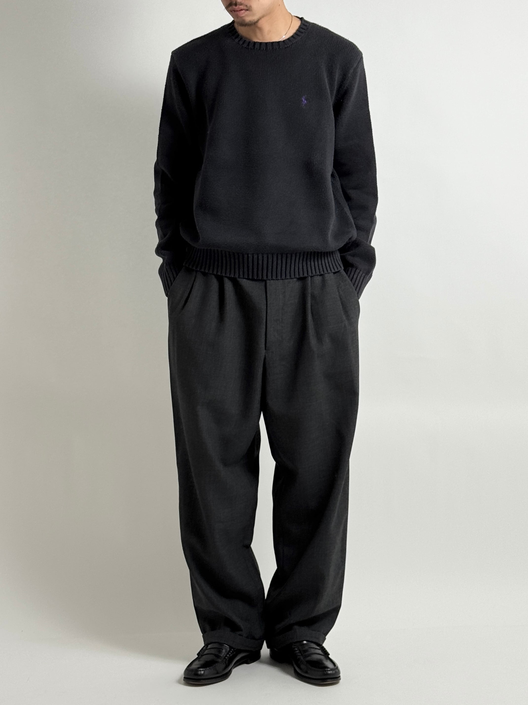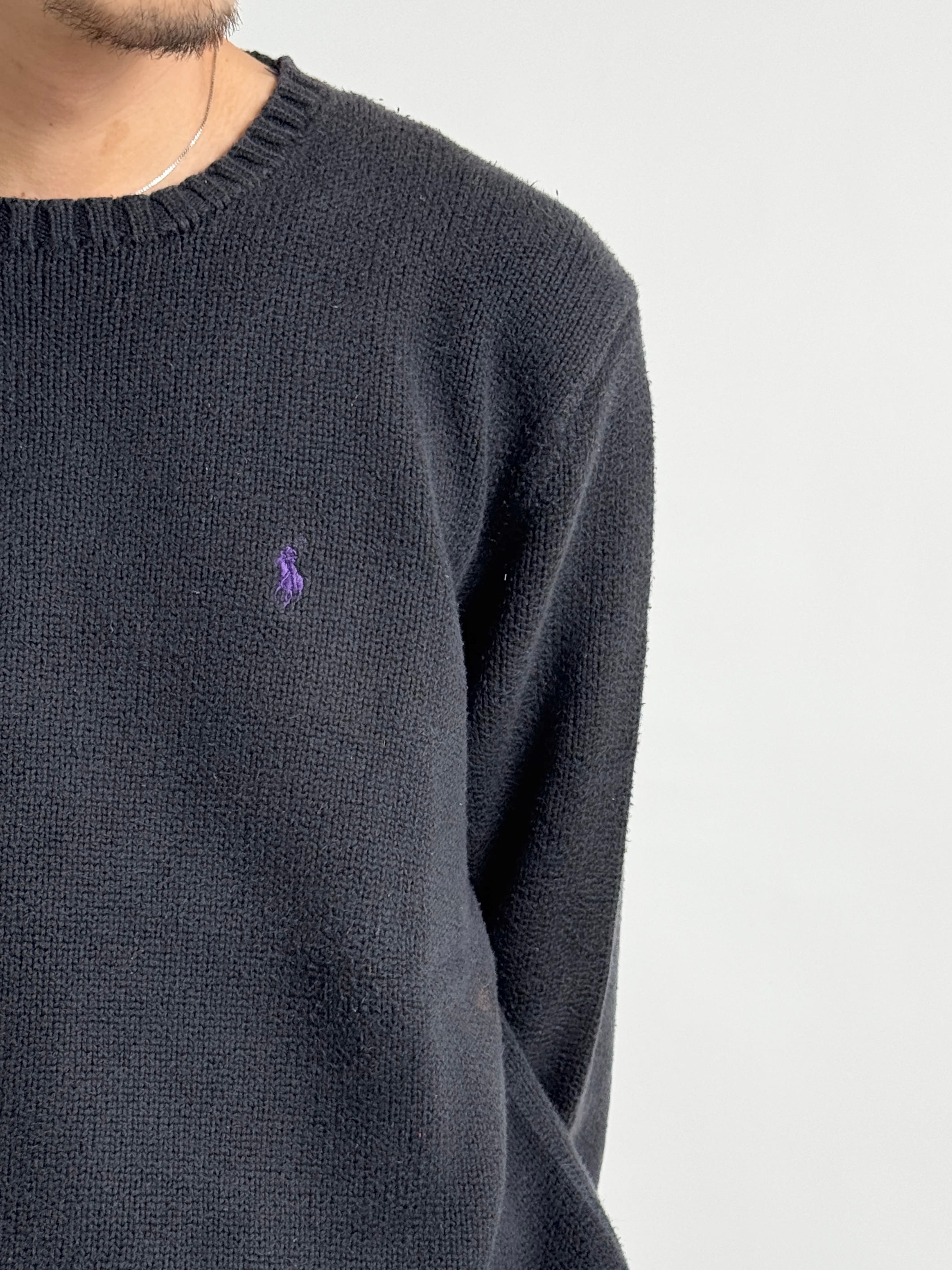 ラルフローレンのロゴニットの中でも一発玉数が少ないような気がするブラックのもの。