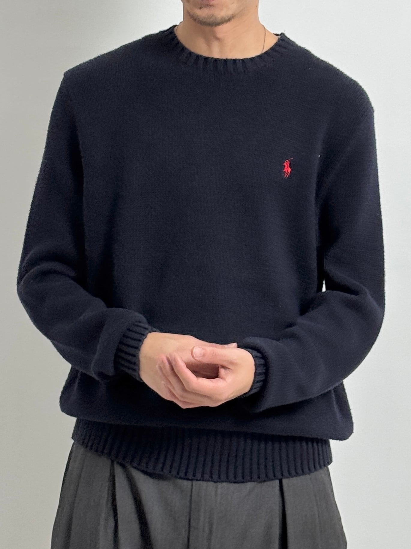 カシミヤにも近い肌触りは、ラルフローレンのコットンニットならでは。